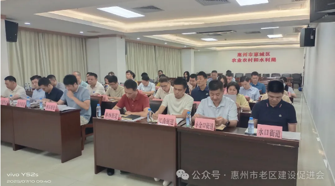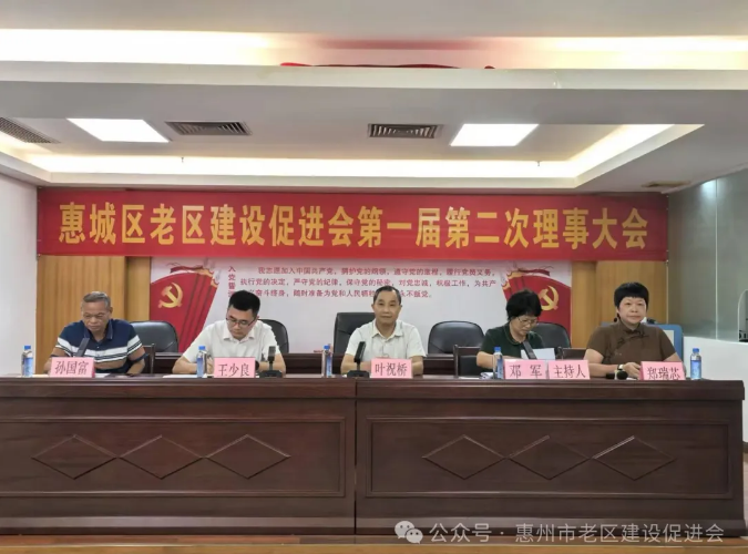 7月10上午,惠城区老区建设促进会第一届第二次理事大会在区农水局8楼会议室召开。区直会员单位代表及镇(街)分管领导共60人参加了会议。大会一是进行文件学习:1、学习《习近平总书记关于革命老区工作重要论述》。2、黄坤明书记在广东省老区建设促进会成立35周年的批示精神。二是叶祝桥会长作了《砥砺前行,为老区建设助力》的工作报告。主要工作:抓学习,武装思想;抓立制,建设队伍;抓宣传,弘扬老区革命精神;抓调研,打好工作基础,助推红色资源保护挖掘利用;抓服务,办实事,为老区建设助力。叶祝桥还提出了下步工作打算:1、加强学习,认真学习习总书记重要论述和中央、省、市有关文件精神,提高思想认识和工作积极性;2、加强协调,整合各种资源和社会力量,增强工作的有效性;3、加强调研,进一步掌握老区实情现状和所需所期,提高工作的针对性;4、苦练内功,提高队伍战斗力。